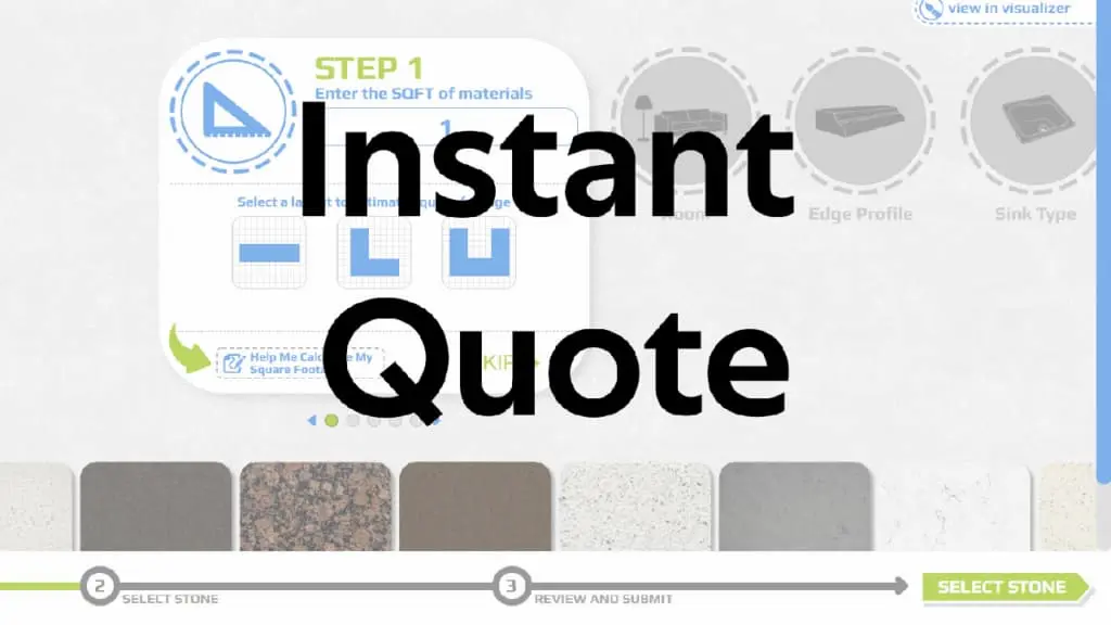 Use our quoting software tool to get a free quote and understand the cost of new countertops before you come in. The process is simple and the software is easy to use. To get started you’ll need to enter in the following information: